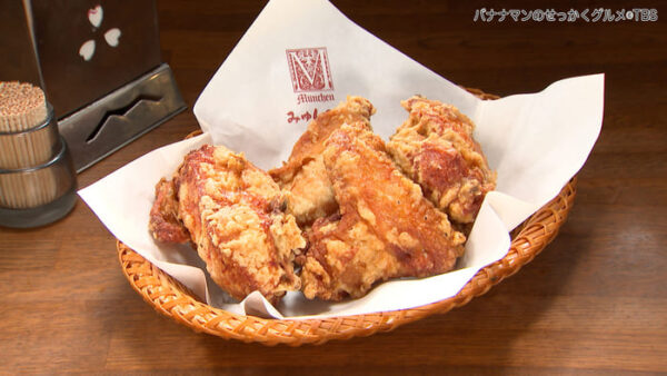 醤油・スパイスなどを使用した秘伝の特製ダレをたっぷりと絡ませて3日程寝かした鶏肉を、低温のラードで15分間じっくりと揚げることで肉の旨みが凝縮されたジューシーでコクのある絶品唐揚げに。