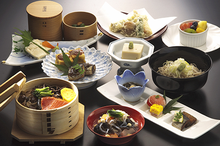 会津の郷土料理がふんだんに頂けるコース。高麗人参の天ぷらは珍しい!