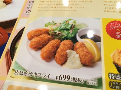 カキフライに使っている牡蠣は広島県産の牡蠣。注文を受けてから揚げているそうでサクサク♪