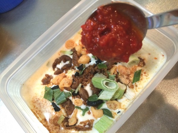 5.混ぜて電子レンジ(500w)で3分30秒。シュウマイも一緒に温める。