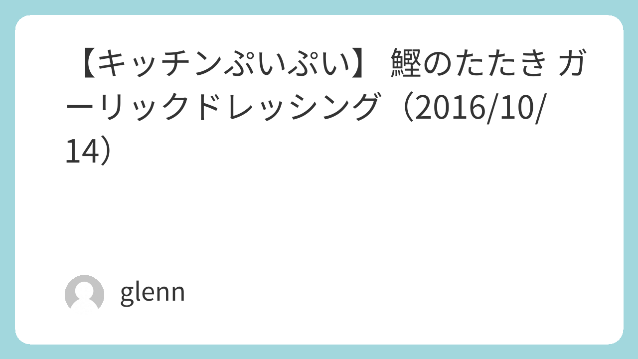 2016年10月14日の『ちちんぷいぷい』”キッチンぷいぷい”で紹介されたレシピ『鰹のたたき ガーリックドレッシング』。作り方はこちら!