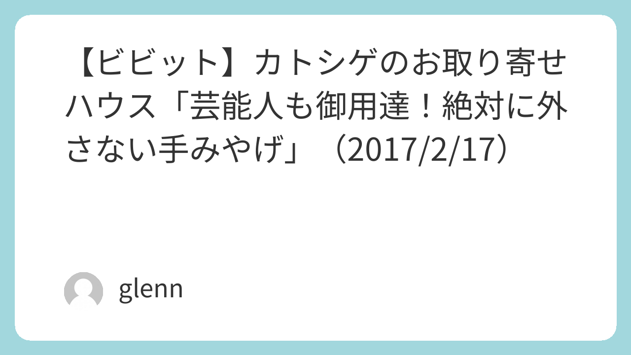 2月17日の『白熱ライブ ビビット』は「カトシゲのお取り寄せハウス」。今日のテーマは「芸能人も御用達!絶対に外さない手みやげ」。