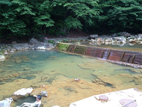 川の底から温泉が沸きだしていて、川自体が丸ごと露天風呂になっている。