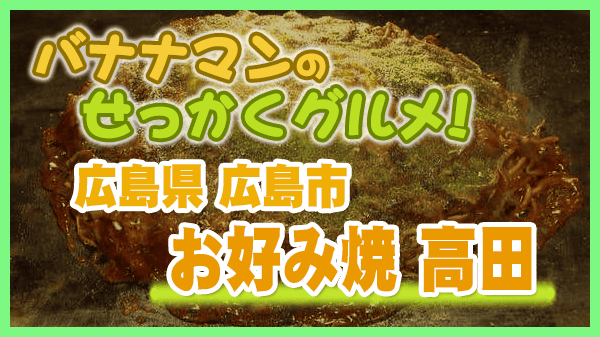 2023年7月16日放送の『バナナマンのせっかくグルメ』は日村さんが広島市で絶品グルメを満喫!こちらのページではその中で紹介された、お好み焼き激戦区・広島で長年愛される!老舗のジャンボ(秘)お好み焼き「お好み焼 高田」についてまとめました。詳しくはこちら!