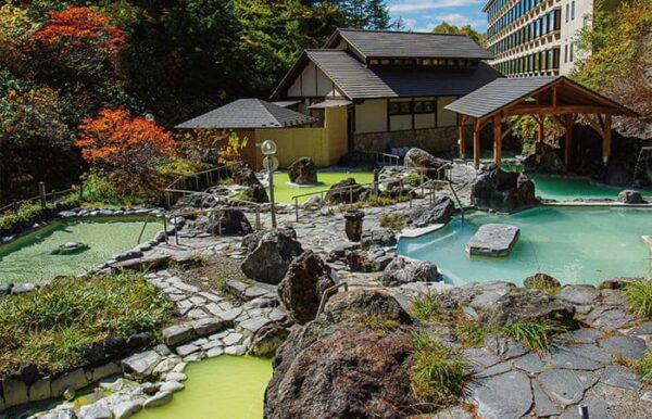 四万温泉は「四万の病に効く」と言われ、胃腸病や保湿・美肌などに効果があるとされる。
