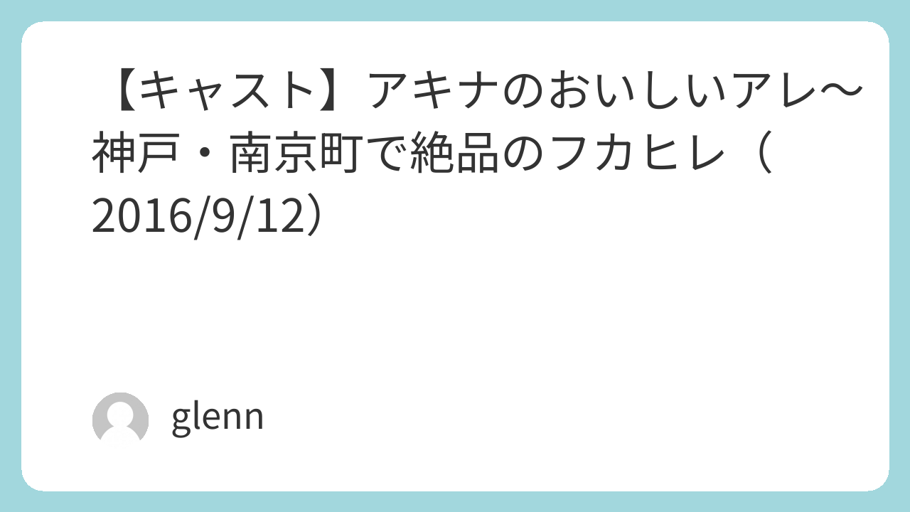 ≫ アキナの「ここよりおいしいアレ…」<神戸・南京町・フカヒレ>完結編(2016/9/26)