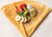クレープの生地は表面はパリッと香ばしく中はモチモチ!毎日お店で作る細やかに泡立てられた自家製生クリームは口の中でとろけます♪