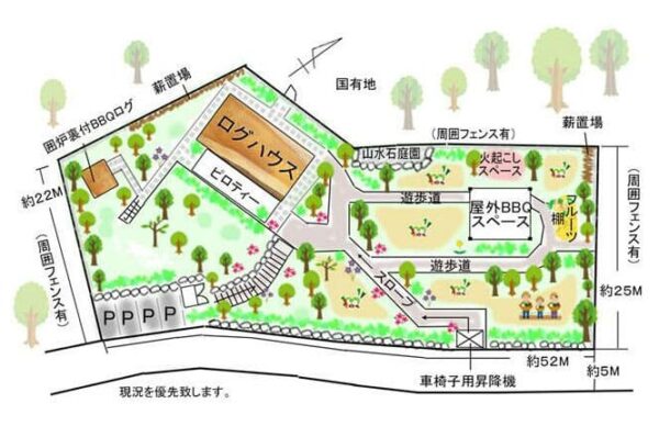 そんな広大な庭には屋外でバーベキューができるスペースに、屋久杉でできた囲炉裏テーブルがある屋内バーベキューハウスも。