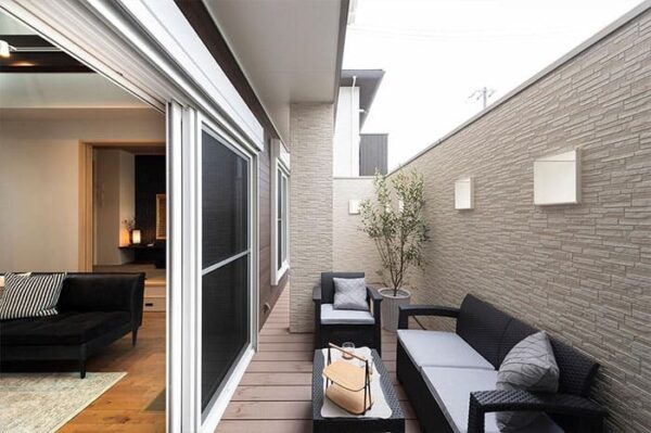 外壁で箱型に囲んだ半屋外の庭スペース