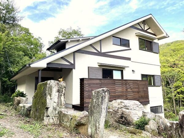 相野駅まで車で約15分、自然いっぱいな別荘地に建つ物件。
