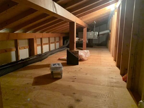 梯子を上がると収納にピッタリな屋根裏部屋も。