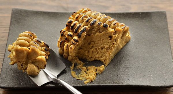 実はムースをトウモロコシの形に型取っている(本物のトウモロコシを使ってオリジナルの型を作ったんだそう)