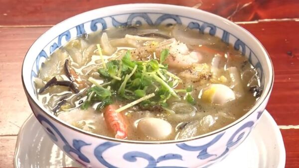 熊本名物。九州に移り住んだ中国人が発案したと言われていて、鶏ガラスープにたっぷりの野菜と海鮮。麺は中華麺の代わりに春雨を使っている。