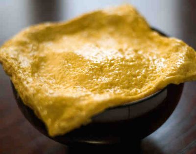うな丼の上に20センチ角の大きな錦糸卵が!