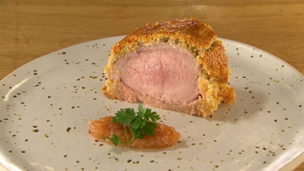 コースのメインは信州黒豚を使った「信州黒豚フィレのカシューナッツ包み焼き」。