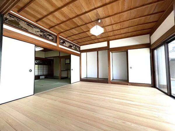 12帖の和室は畳を板張りに変更。