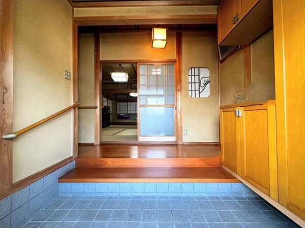 駐車場からそのまま入れる、ふだん使い用の裏玄関から入ると、広い土間玄関。