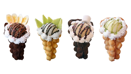 ワッフルをパフェ状に仕立てた「パッフル」。