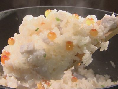 ● 蛍いかのお粥 ~トマトの酸味を効かせて