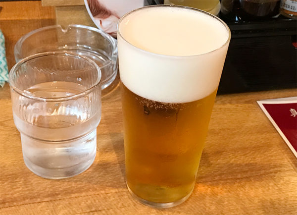 生ビール(プレミアムモルツ)500円。まぁラーメン屋さんのビールなんでお値段はこんなものかな?^^;