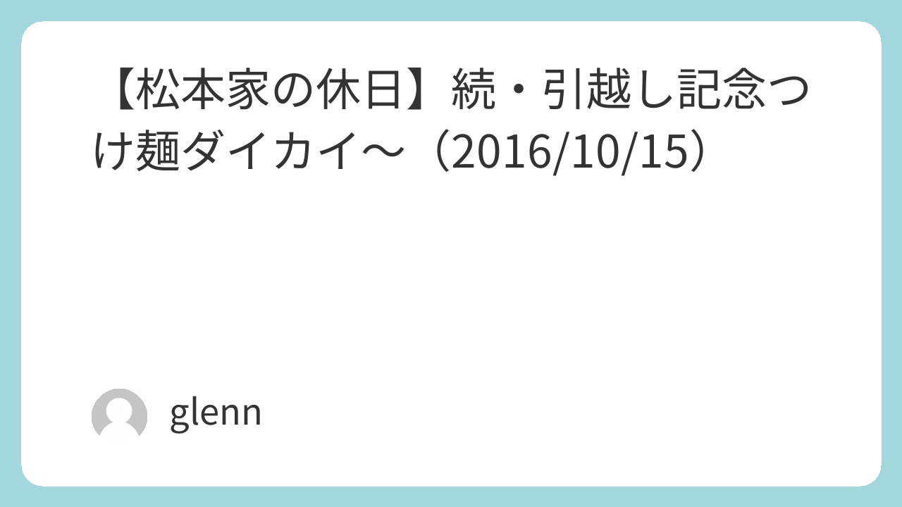 ≫ 土曜日にお引越しで『つけ麺大会』!(2016/10/8)