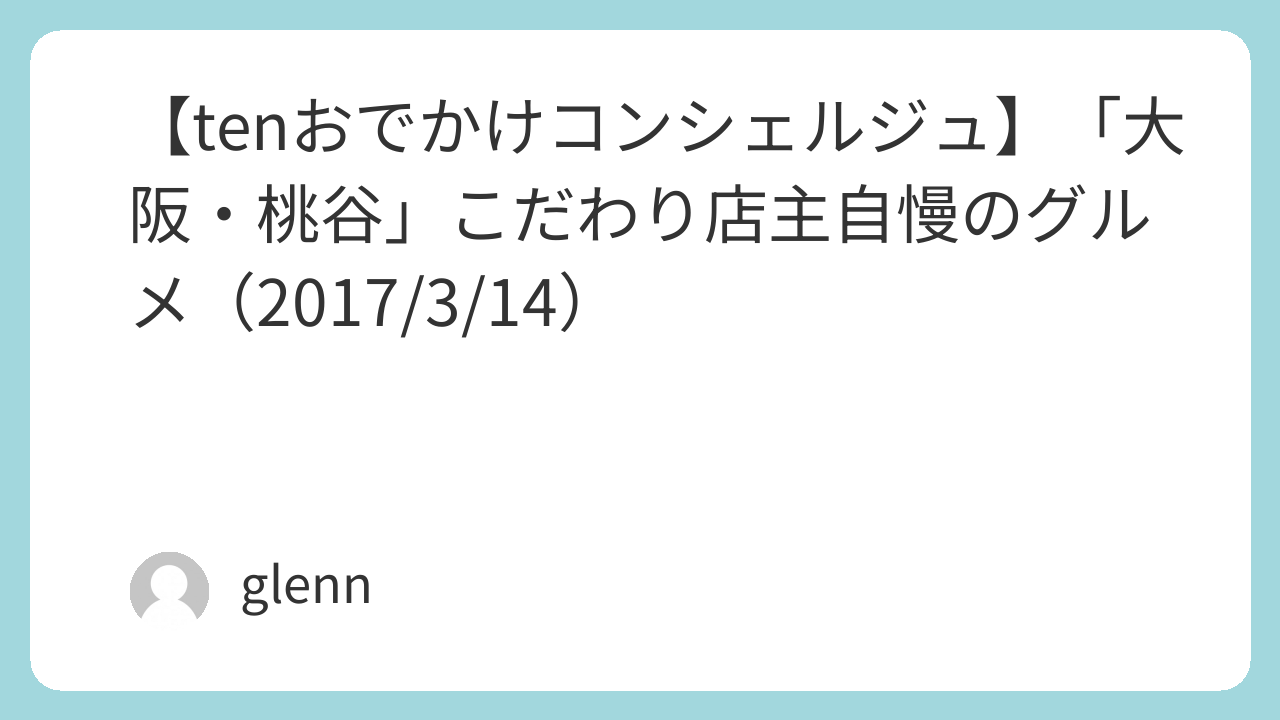 【tenおでかけコンシェルジュ】「大阪・桃谷」こだわり店主自慢のグルメ(2017/3/14)