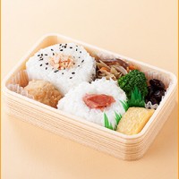 おにぎり弁当の定番ともいえるおかずが入った<豆藤>ロングセラーのお弁当。おにぎり(鮭・辛子めんたいこ)・きんぴら・玉子焼きを詰め合わせ。