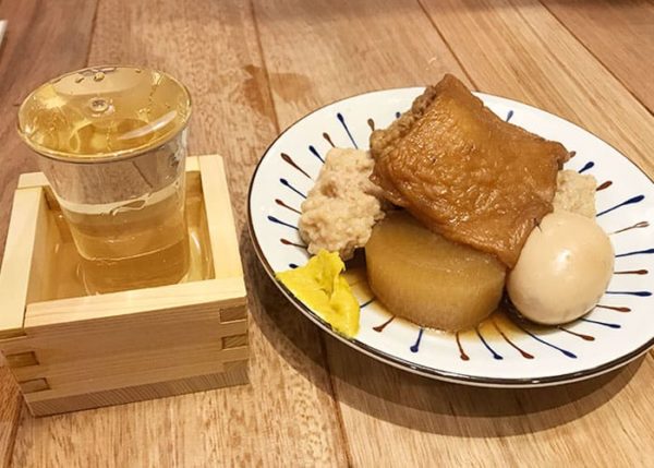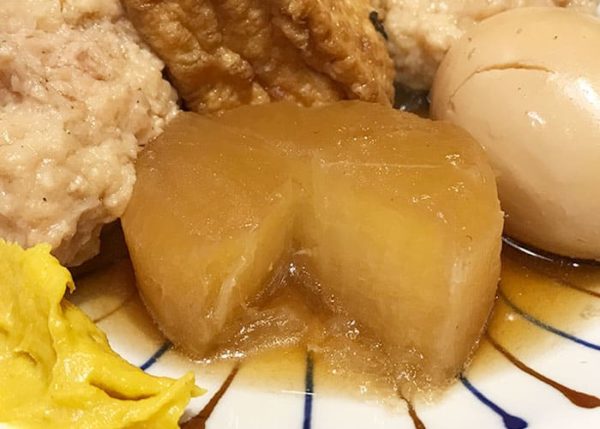 「大根」「たまご」「鶏つくね」、前田豆腐店の「絹厚揚げ」、いさみ蒲鉾店の「いか天」を注文。