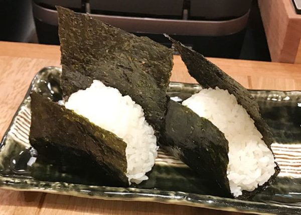 そして、最後に巻く海苔。七輪で軽く炙ってからおにぎりに巻いてくれます。炙った海苔って美味しいですよね♪