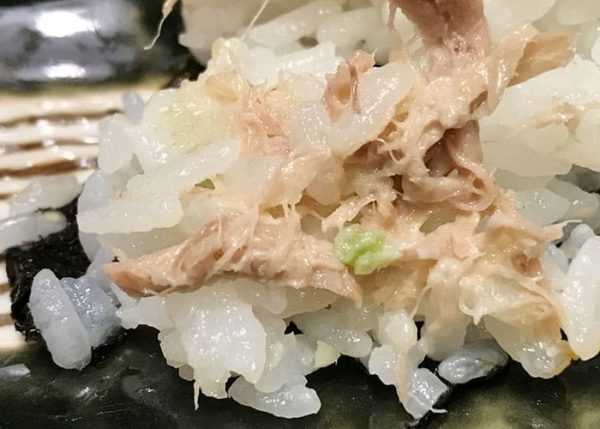 竜マークが付いたおにぎり。ツナマヨの中に「刻みワサビ」が少し入っており、絶妙なアクセントになっています。