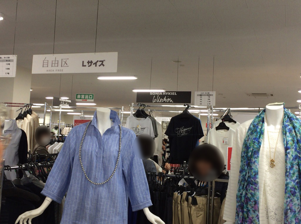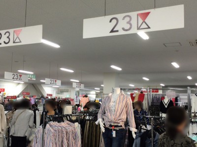 オンワードファミリーセール 大阪会場。続きまして2階に行きます!婦人服、子供服、婦人服(Lサイズ、Sサイズ)の売場です。