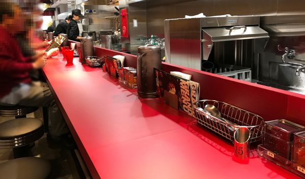 店内は赤と黒で統一されていてスタイリッシュ♪ コンクリート打ち放しの感じもいいですね~。