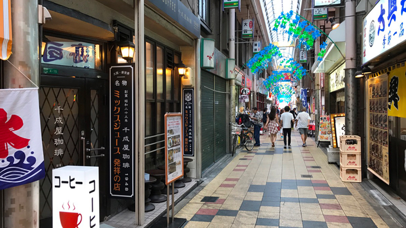 お店の場所は新世界・ジャンジャン横丁。串カツ屋さんや、立ち呑みの居酒屋さんが並ぶ商店街の中にあります。