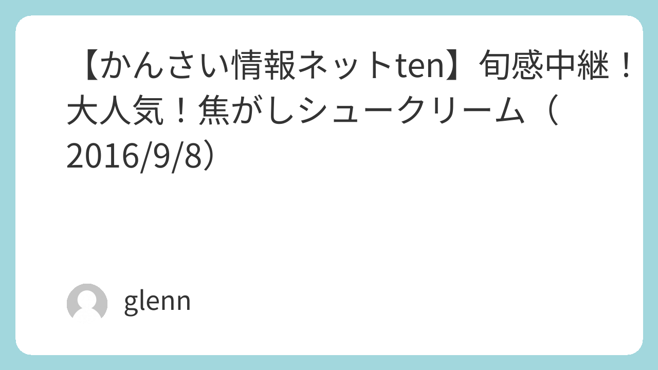 9月8日放送の『かんさい情報ネット ten』は蓬莱さんの旬感中継!今日は大人気!焦がしシュークリーム!紹介された情報はこちら!