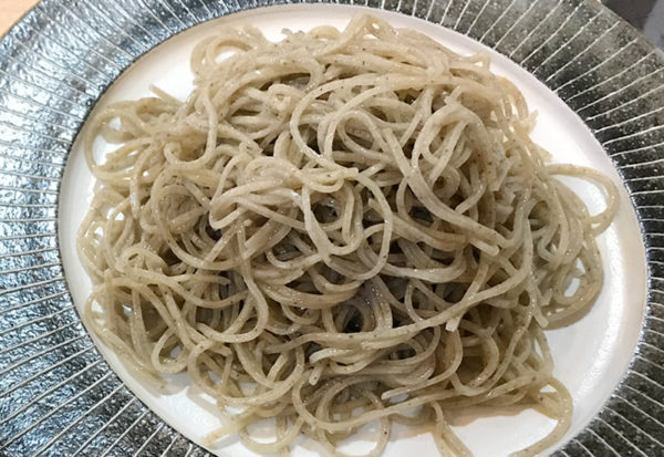 綺麗なツヤのある十割蕎麦。塩で少し付けて食べてみましたが、蕎麦の風味がスゴイ!