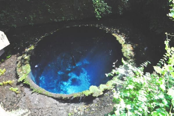 繊維メーカーが水を汲みとるために設置した土管がそのまま放置。その結果、そこから滾々と湧き出る神秘的なブルーの泉に。