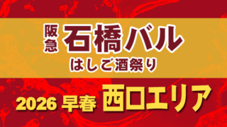 大阪・池田市の阪急石橋周辺のお店が数多く参加する石橋最大級のグルメイベント『阪急石橋バル はしご酒祭り』。2026年は早春と題し、例年より早い2月から開催される80店舗が参加する大規模な街バル。阪急石橋駅の「西口エリア」の参加店&バル料金&バルメニューを一覧にまとめてみました。