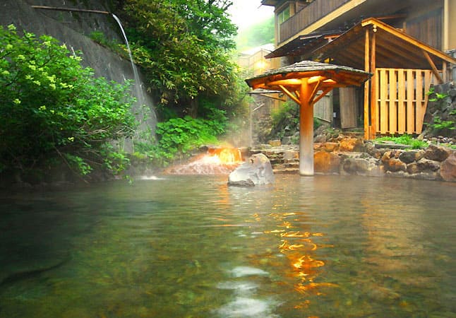 裏山の自家源泉から流れ出た温泉の流れる川をせき止めて作られた「川の湯」は自然と一体になれる野趣あふれる露天風呂で、温泉成分はメタケイ酸を多く含んだ、いわゆる美肌の湯。大丸温泉の源泉は那須御用邸にも引湯されているそうです。