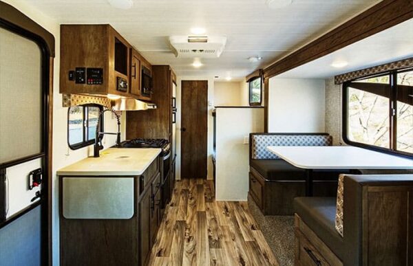 室内にはキッチンやソファーはもちろん、冷暖房も完備。