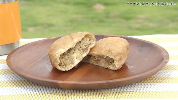 使用する食材は自社牧場で栽培している新鮮なキャベツ。甘みの強いキャベツと玉ねぎをミジン切りにして塩でもみ、醤油や生姜で味付けした豚挽き肉と合わせることで野菜の旨みと肉汁たっぷりの餡を作る。その餡をもっちりしたパン生地で餃子のように包み、高温の油でカラッと揚げている。
