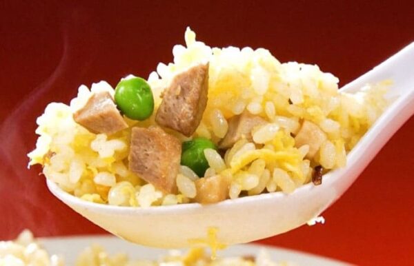 まずお米と卵を炒め、玉ねぎやニンジンなどの具材を加え、塩で味を調えたら、そこに加えるのが自家製チャーシュー。八角と数種類のスパイスで3時間煮込んだ絶品チャーシューをたっぷりと投入。強火で一気に炒めればチャーシューの旨みを米一粒一粒にまとわせたしっとりチャーハンに。