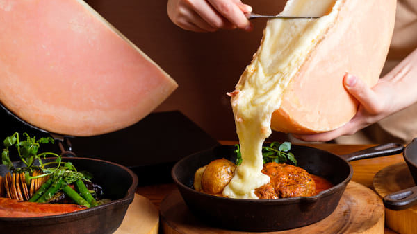 ソーセージとポテトの上にあつあつとろとろのラクレットチーズをたっぷり♪