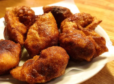 1度茹でてから水で溶いた上新粉にくぐらせ、カリッカリに焼き上げている。これが絶妙の食感を生み出すんだそう。