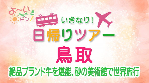 2024年8月13日の『よ~いドン!』「いきなり!日帰りツアー」は鳥取。絶品ブランド牛を堪能、砂の美術館で世界旅行など、訪れたスポットや食べたグルメなど、紹介された情報をまとめました!