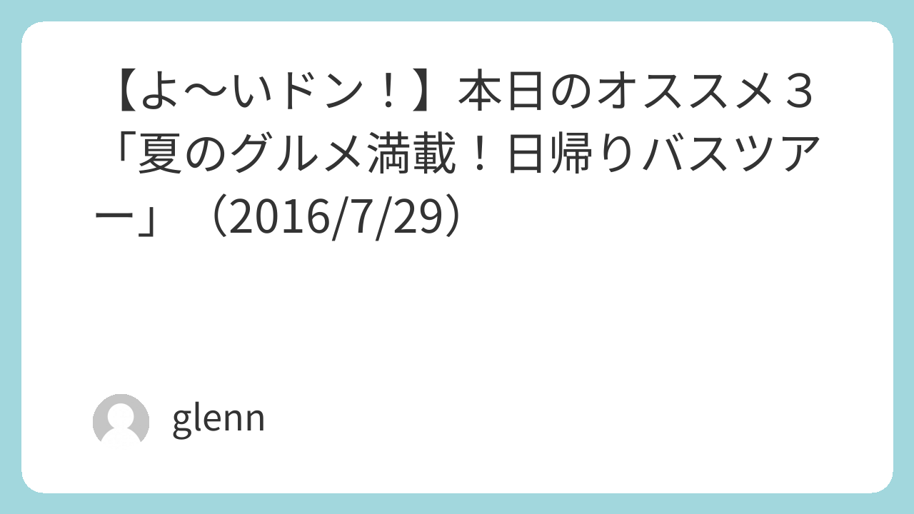 7月29日の『よ~いドン!』本日のオススメ3「夏のグルメ満載!日帰りバスツアー」で取り上げられたスポットはこちら!