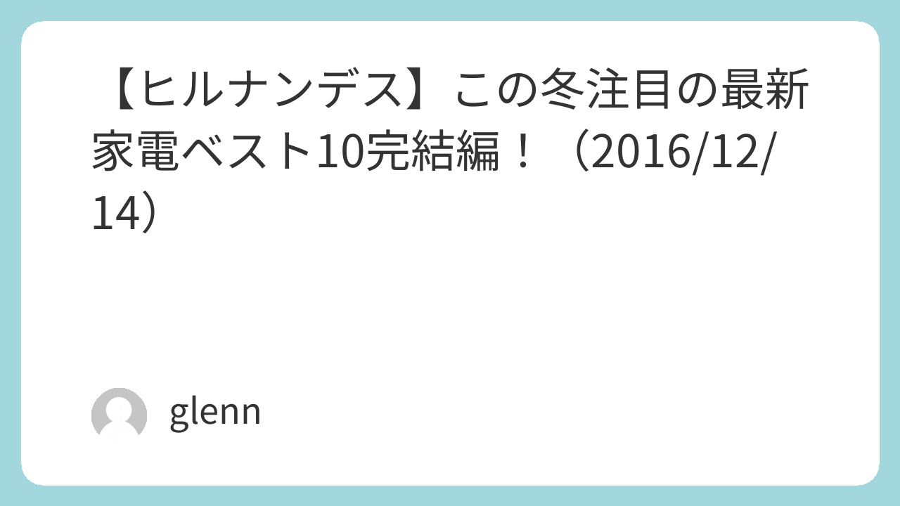 ≫ 掃除機に炊飯器!最新家電ベスト10を発表!(2016/12/7)
