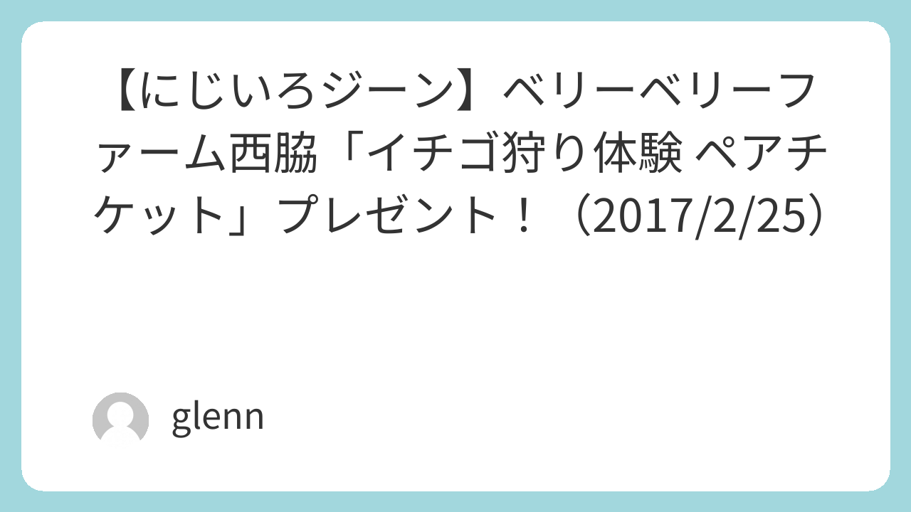 2月25日放送の『にじいろジーン』で紹介されたベリーベリーファーム西脇の「イチゴ狩り体験 ペアチケット」プレゼントはこちら!
