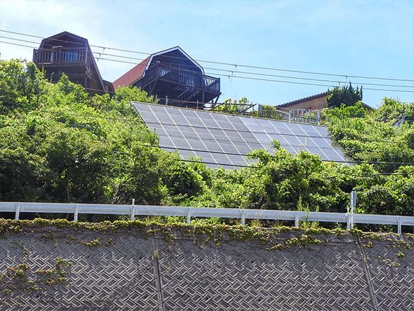 また、この物件にはカーポートの屋根や建物の裏手にソーラーパネルを設置。毎月の電気代をまかなえる上に、売電収入も◎。