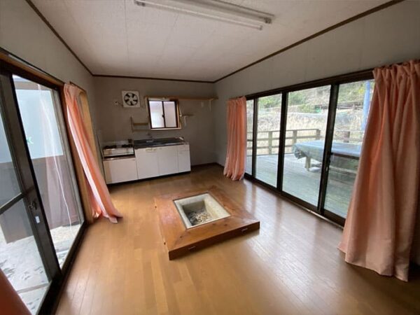 囲炉裏は収納も可能。収納すると床とフラットにすることができます。