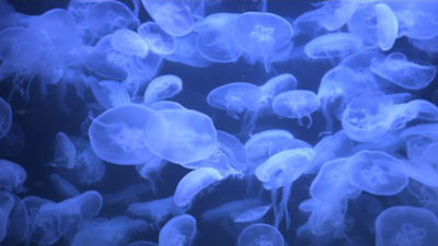 老衰死せずに若返りを繰り返すという“不老不死”の「ベニクラゲ」や傘の直径が1メートル近くにもなるという大型のクラゲ「ユウレイクラゲ」なども展示されています。